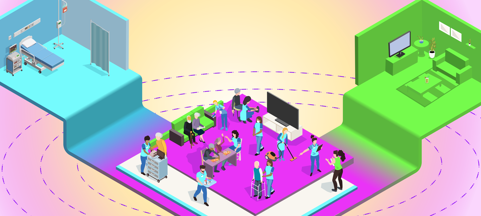 Nursing homes sit between two institutional sides. One is driven by healthcare efficiency and risk management. The other is driven by the ethos of being a home and a place that respects residents' self-determination.
